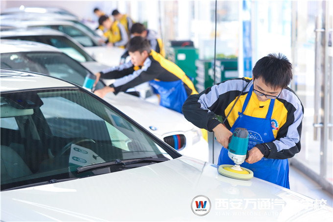 近年來,隨著國民收入水平提升,汽車走進了千家萬戶,人們對汽車養護也有了更多需求,汽車貼膜、改色、隱形車衣等特色消費需求爆發式增長,已經形成千億級市場。但是現有的汽車美容店數量僅為需求量的50%左右,因此一大批待業在家但又不甘于現狀的有志青年發現了汽車美容技術的前景廣闊、潛力巨大,都想去正規且專業的西安萬通汽車學校學習技術創業。