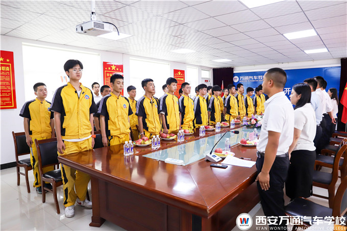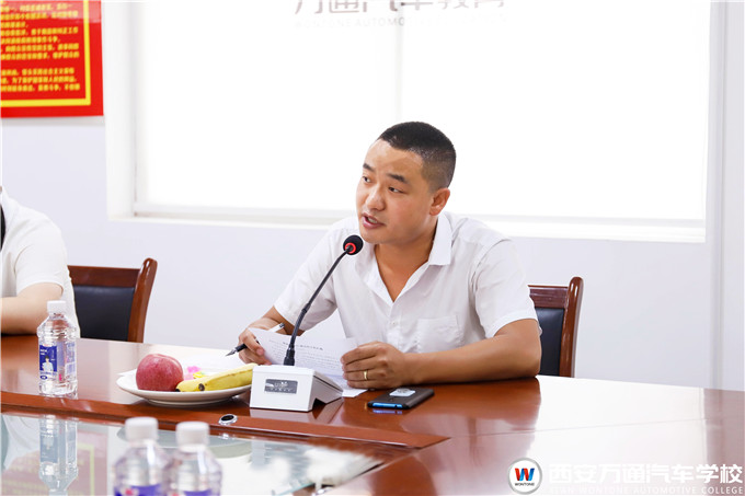 新生代表發言表示,同學們都是為了同一個理想來到西安萬通汽車學校學習技術,學校的任課老師專業技能扎實,班主任老師耐心負責,學校實訓設備完善先進,希望大家把握好學習時間,學好專業知識,在汽修行業闖出自己的天地。